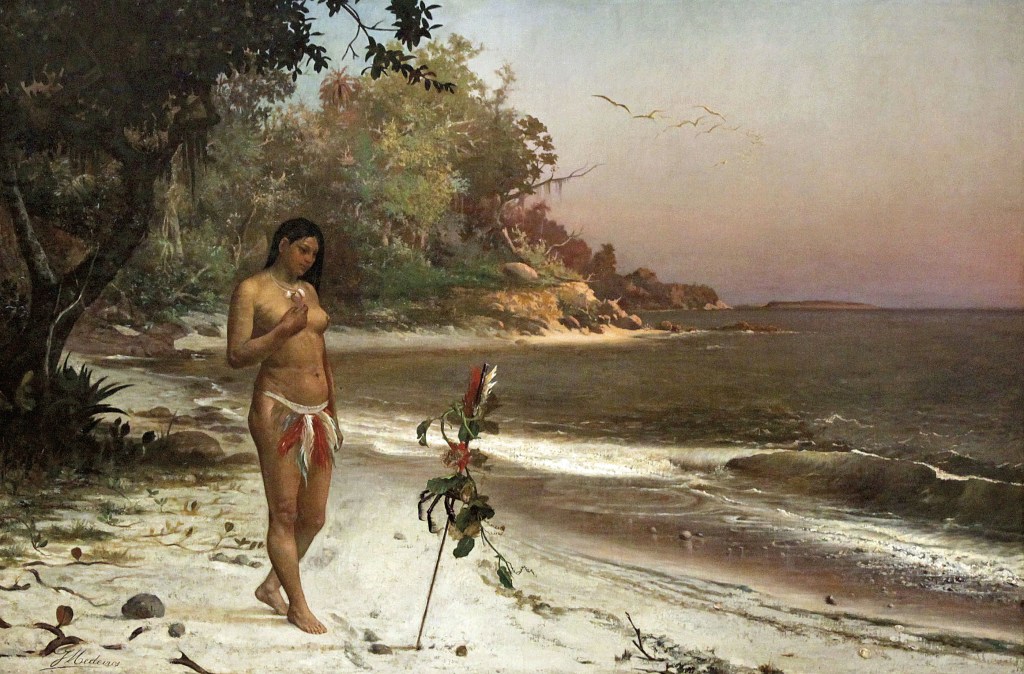 A primeira delas é também a mais famosa: a clássica “transa cearense” de Iracema, a virgem dos lábios de mel, com o guerreiro branco, Martim, no romance de 1865 do escritor José de Alencar (1829-1877). A história se passa no começo do século XVII, quando os portugueses lutavam para expulsar os holandeses do nordeste, mas o livro inteiro é construído em torno da preparação e das consequências do sexo entre a índia e o europeu. Você deve estar pensando:
